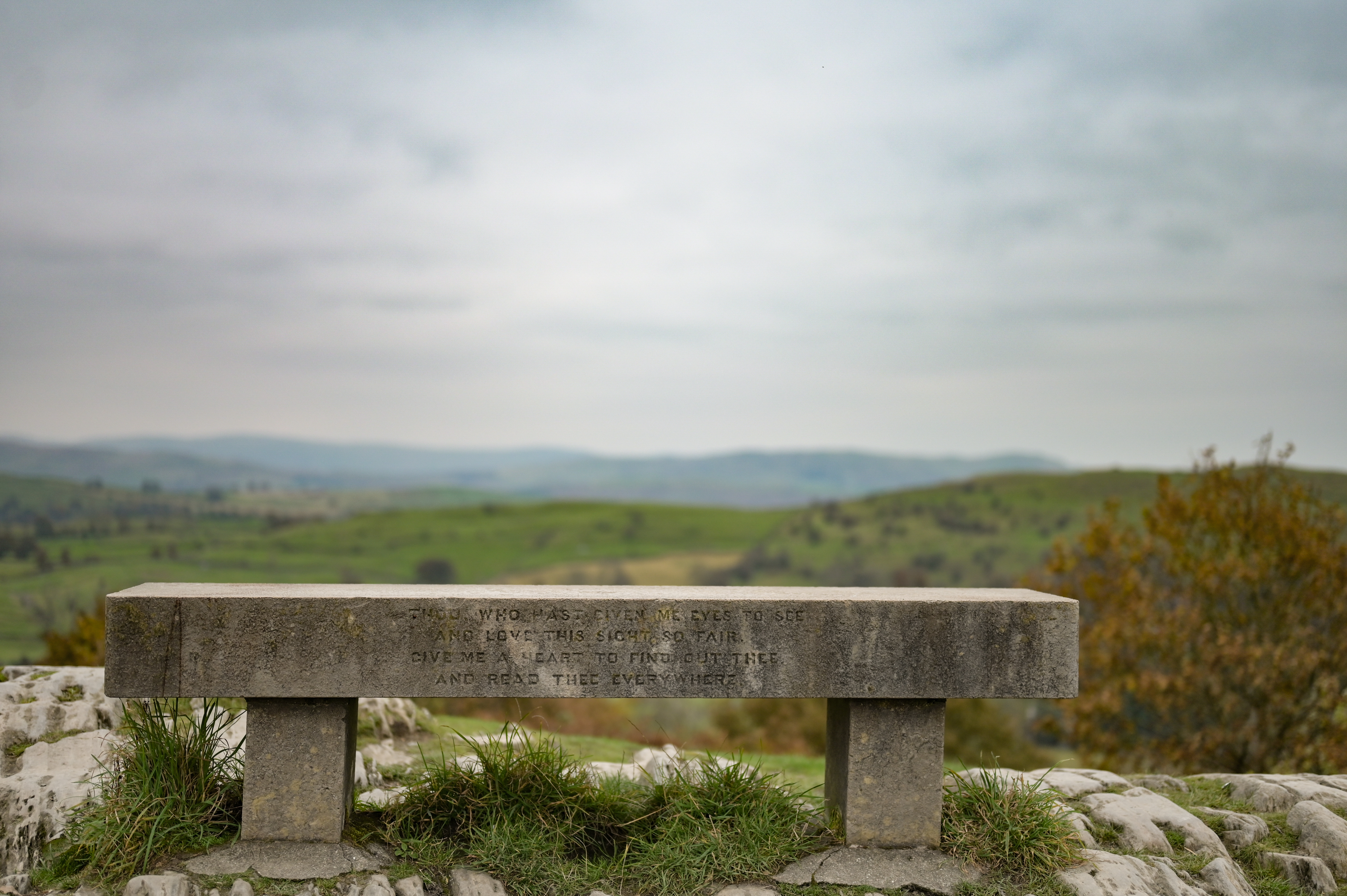 An excerpt from a hymn inspired by this view and written by John Keble is carved in the bench at the top.