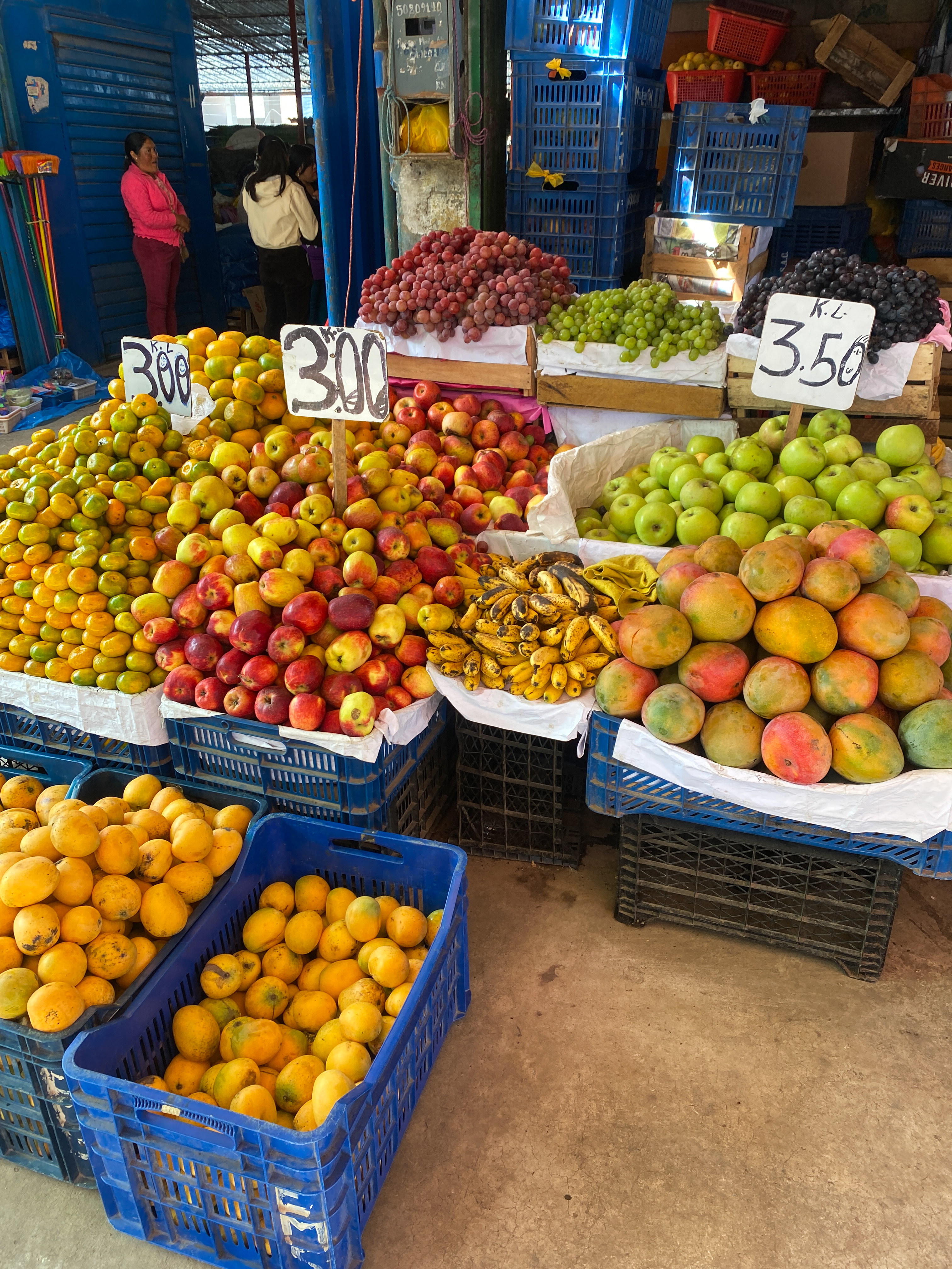 After breakfast, we walked 30 minutes to the Caraz Market. It was crowded with fruits, vegetables, butchered chickens, bags of live guinea pigs (a delicacy here), random cuts of pork, and lots of herbs, corn flours, and other foods. We were definitely the only tourists there, so between my sunburn and us being so clearly American, we drew some interesting comments. It was fun to put my limited Spanish vocabulary to use, and I was inspired to study it more.